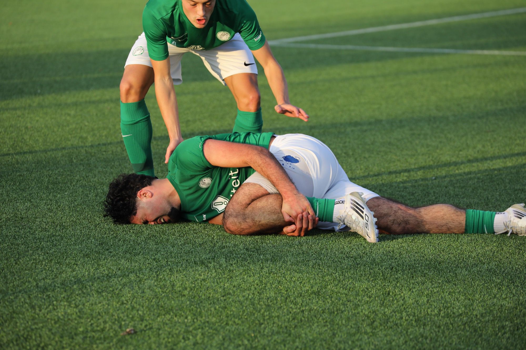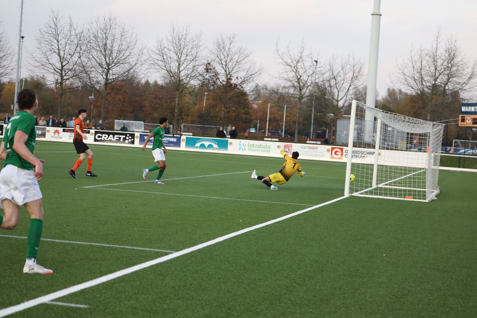 Net voor rust was er een aanval van de thuisploeg, een schot dat van richting werd veranderd waardoor Jonathan-keeper Jim van Dijk op het verkeerde been stond. Met 1-0 op het scorebord de rust in. Een geflateerde stand, die zorgde voor extra groen-witte motivatie in de 2e helft.