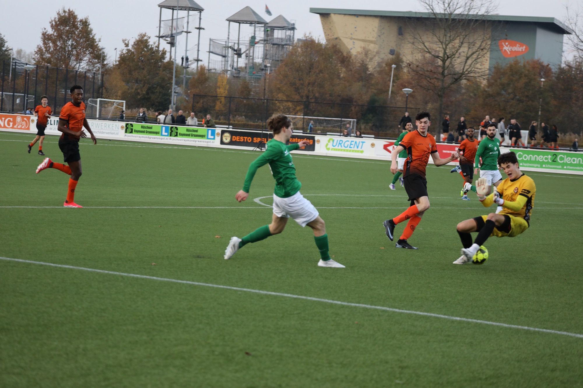 Met nog een half uur speeltijd had Jesse Geldmeijer de bal op het middenveld. Met een mooie actie passeerde hij twee spelers van Desto en gaf een prachtige voorzet op Nick Neerings. Met zijn linkerbeen schoot hij de bal in de goal: voorsprong 1-2.